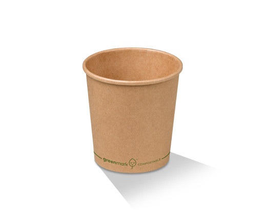 Made from kraft paper and coated with PLA bioplastic, derived from cornstarch – 100% commercially compostable.
